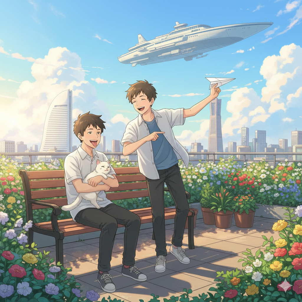 「不燃ごみの量子攪乱」のGemini画伯のジブリ風味です。