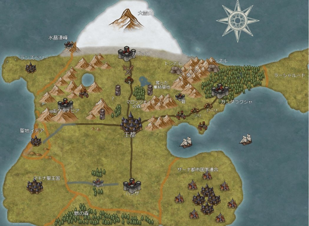 このマップには出ていませんが、南大陸と東大陸が存在します。