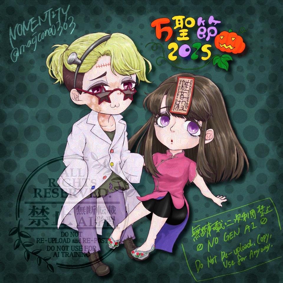 キャラクターは『鳴かぬ蛍は残響を消す』から蛍とワカシ、それぞれキョンシーとフランケンシュタインの怪物コスプレをしてもらいました(*⁰ω⁰*)そういやワカシの絵をカクヨムに持ってきたのもこれが初では?