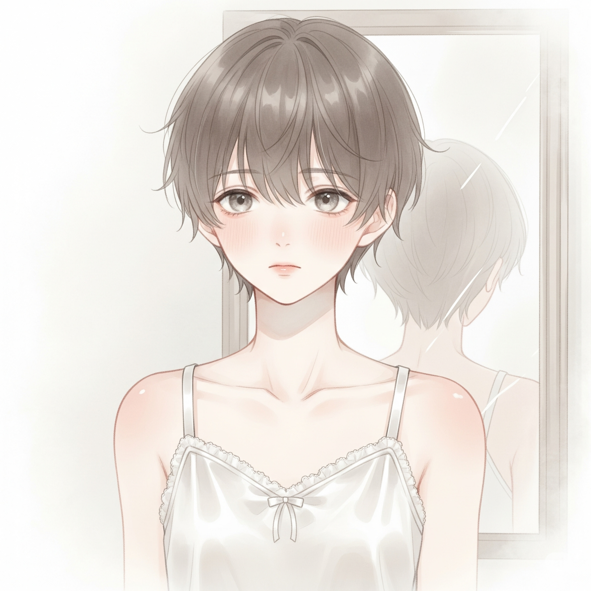 僕は息をのんだ。細い肩紐に、胸元には小さなリボンと繊細なレース。これがキャミソール……。ザ・女の子って感じの、すごく可愛い下着だった。