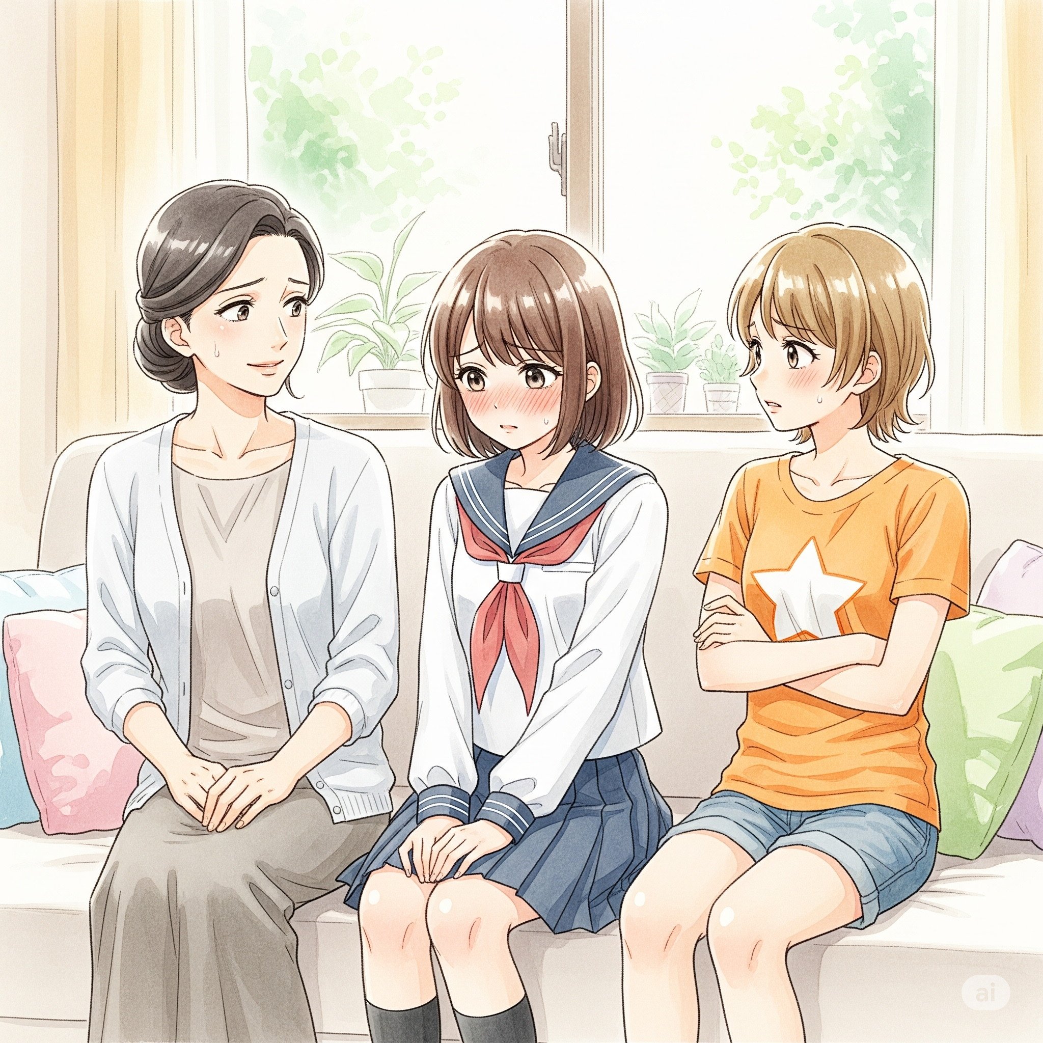 玲央は、隣にいるおかあさんとお姉ちゃんの顔を交互に見上げた。