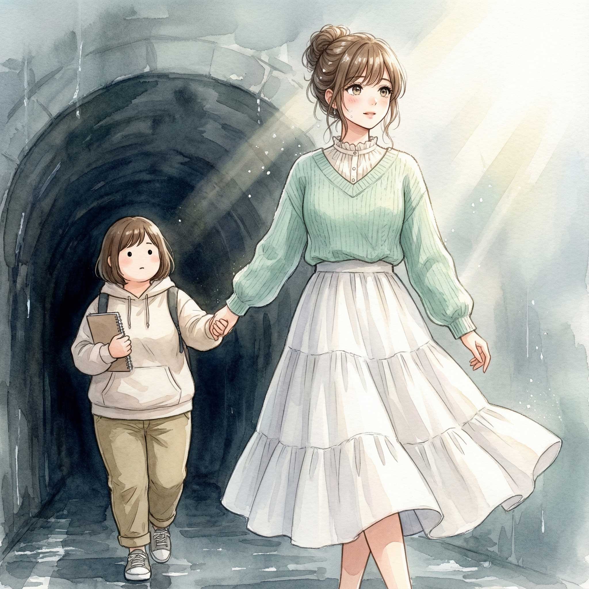 玲央はADの手を引き、決してお化けから目を離さず(背中を見せず)、ゆっくりと、しかし確実にその場を切り抜けました。 トンネルを抜けた先には、さらなる地獄(泥沼)が待っているとも知らずに。