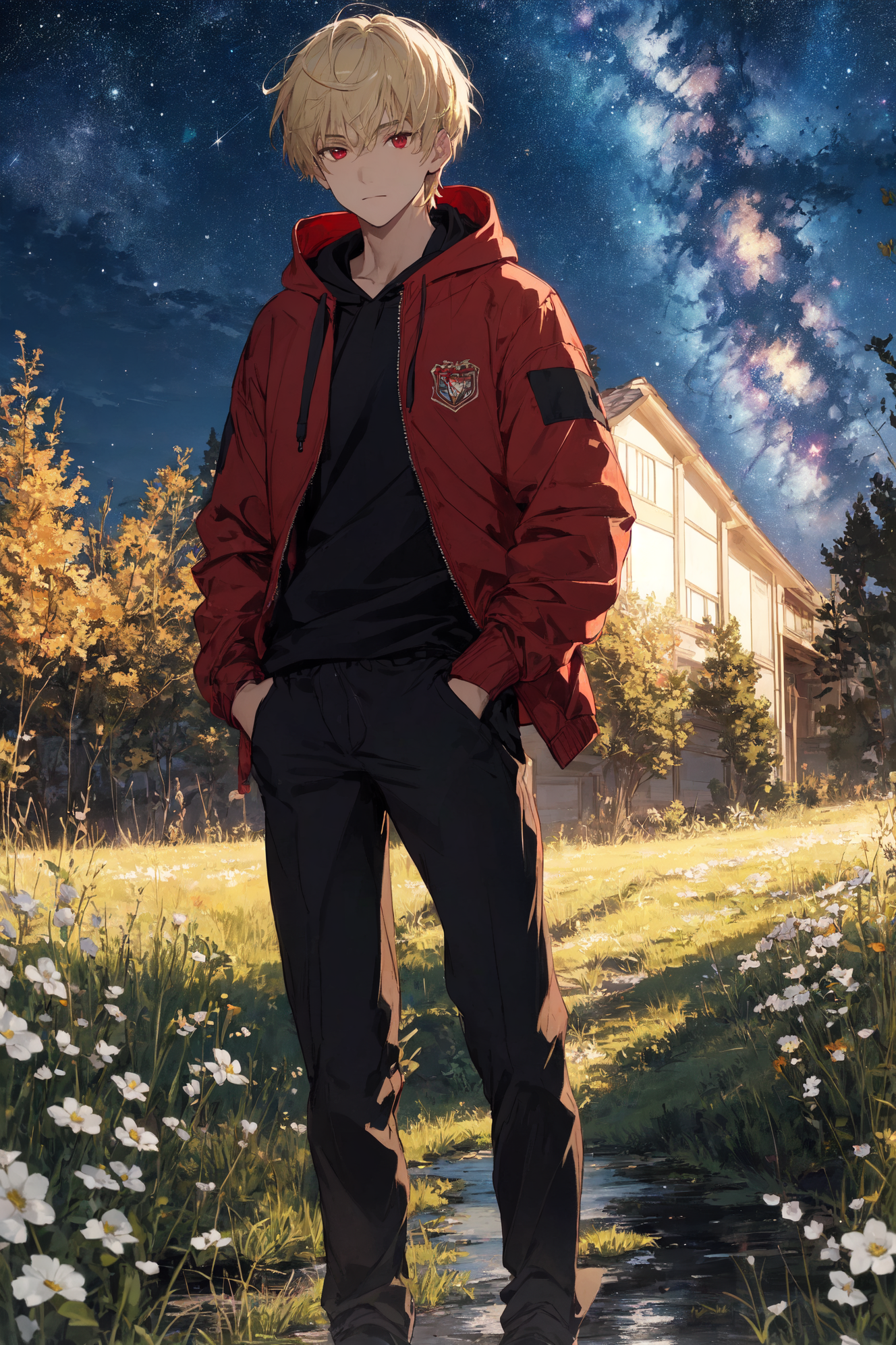 金髪に真紅の瞳が特徴的な少年である「ソルデウス」のイメージAI画像を載せました!