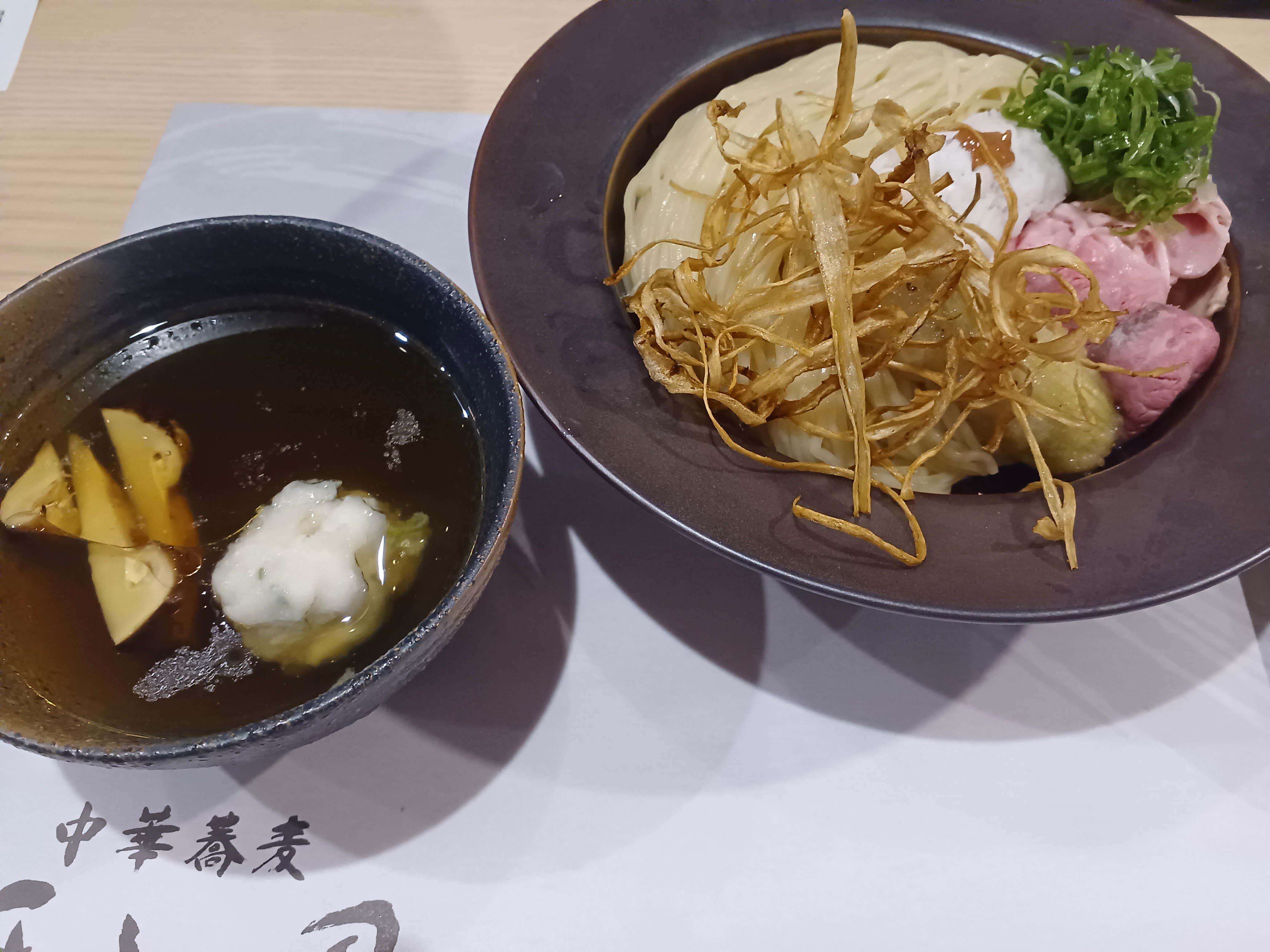 ほし乃の鱧と松茸ラーメン(2022年)は、こんな感じです。上品で、麺の量が多く、お腹いっぱいになりました(ごぼうの下はナスです)。