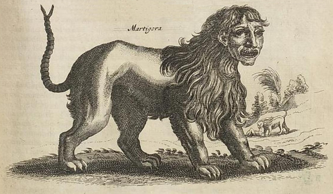 これはヨハネス・ヨンストンの『動物図譜』に載っている『マンティコア』です。