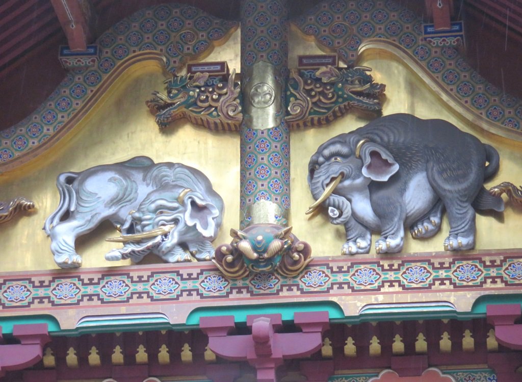 画像は、日光東照宮・上神庫の象の木彫りです。