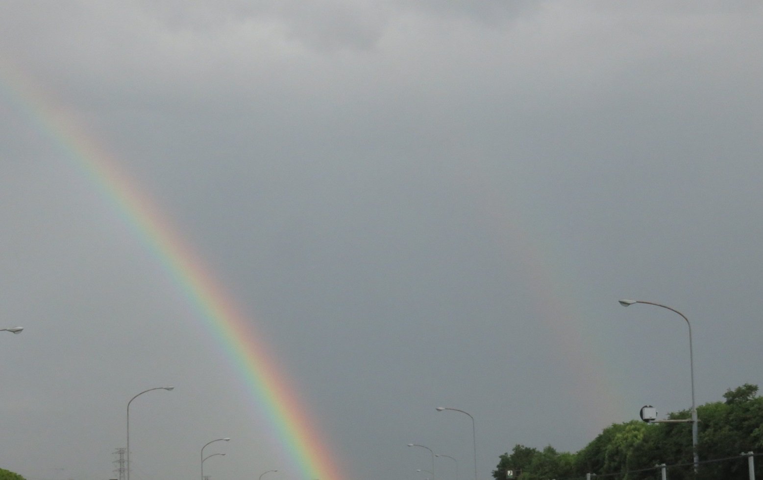 帰宅後に調べたら、ダブルレインボーは、エンジェルサインと言い、見た人に幸運が訪れるらしいです。