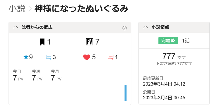 こう言う経験が出来たのも、運営が777文字の作品にご褒美を用意してくれたおかげです。本当に有難うございます。