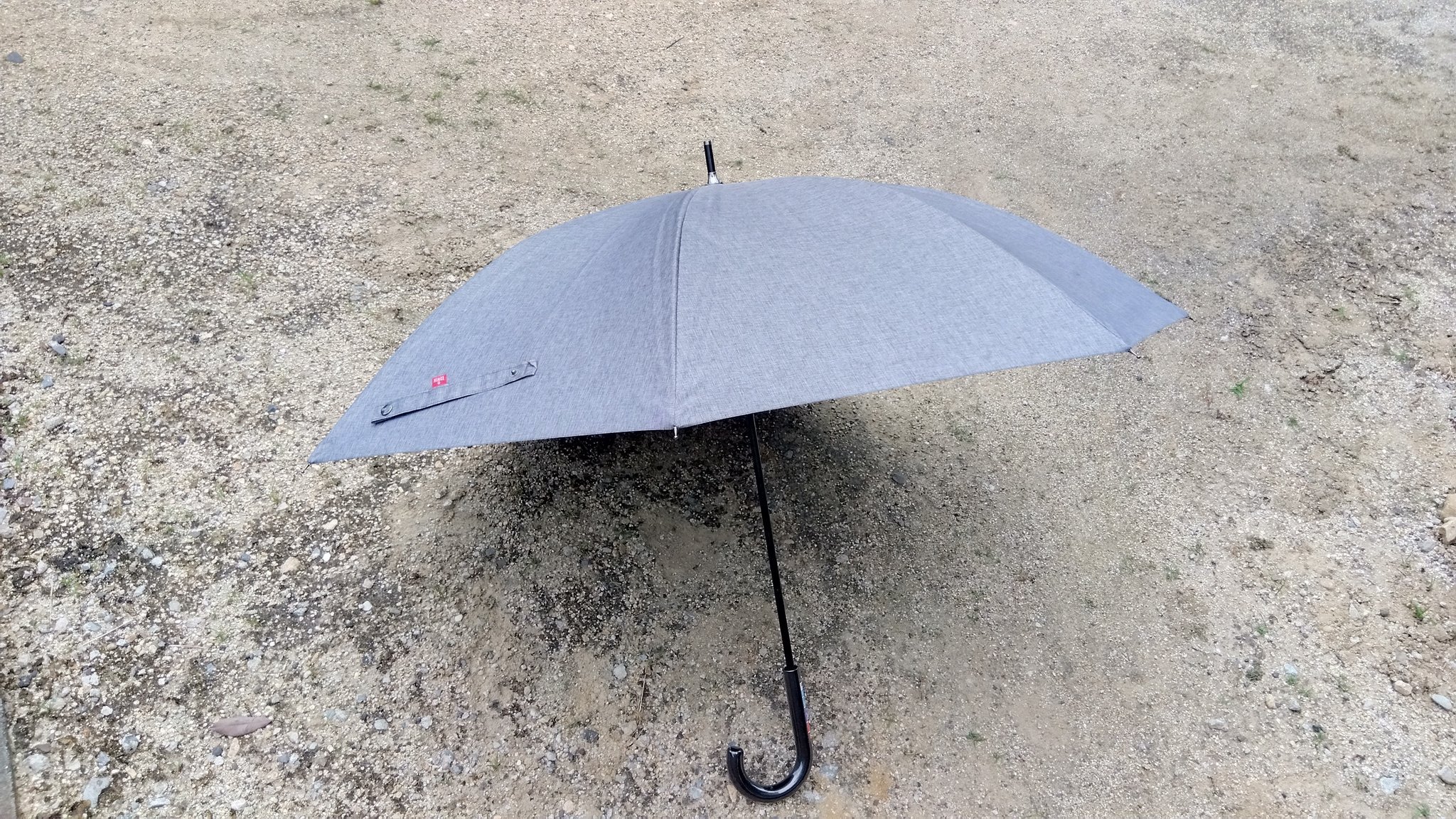 買ったのは地元のショッピングモールで普通に売っていた紳士用晴雨兼用の日傘。お値段は定価3600円の3割引き。ちゃんと日傘機能も充実しているんですよ。遮光率99%以上で紫外線遮蔽率99%以上、遮熱効果あり。見た目やデザインも普通の雨傘のようです。