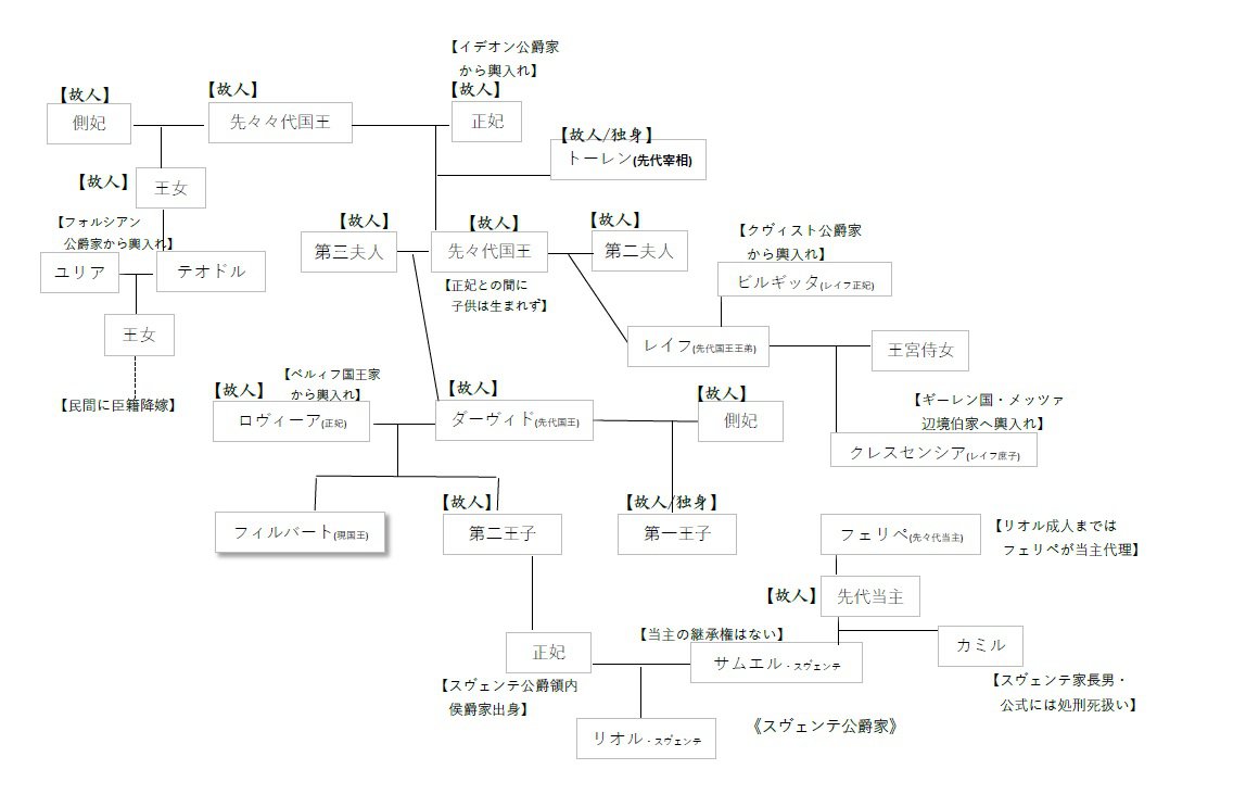 今日はアンジェス国当代国王フィルバートを中心とした家系図をupします!