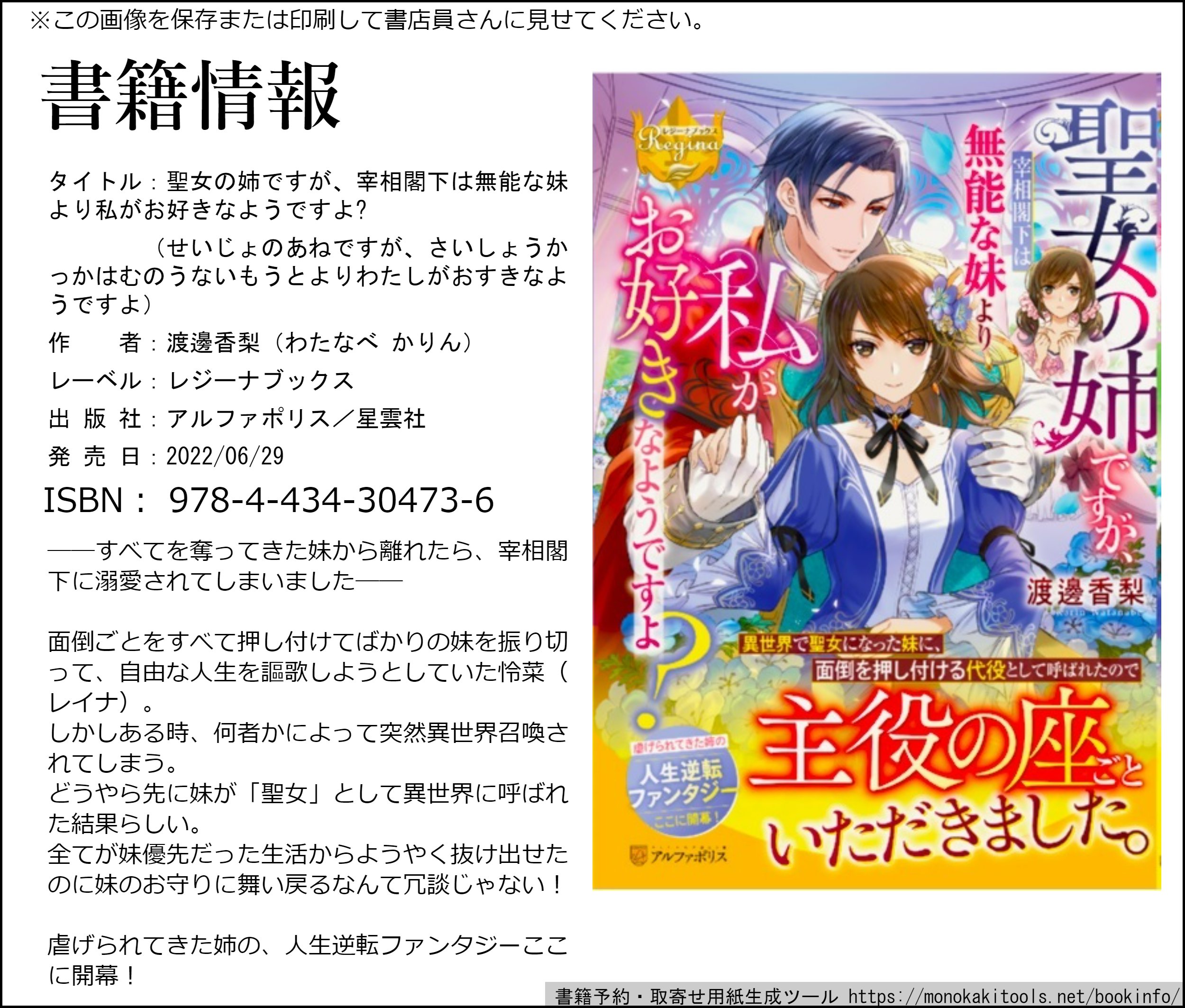 ISBN(書籍を特定するための世界共通番号)が発行されましたので、書籍化された著者様が度々使っていらっしゃる「書籍予約・取り寄せ用紙作成ツール」を使って、私も書籍予約に必要な情報をまとめた画像を生成しました!