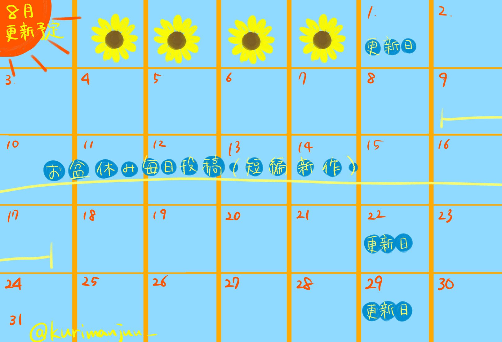 さて、そんなクソ暑い中も折上は元気に小説を更新したいと思います。今月は毎週金曜日23時の更新に加えて、9日〜17日の合計9日間で新作短編を公開します! どうぞお楽しみに!