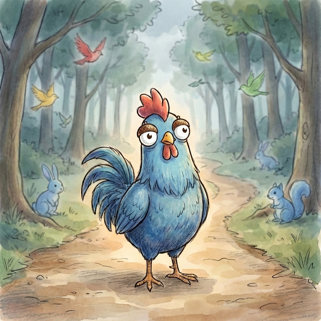 添付画像は、関係ない森の青いニワトリです