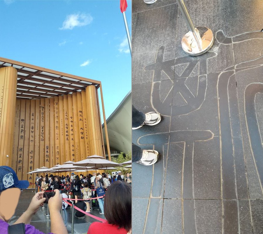 写真右:前回並んだ時には気がつかなかったんですが、足元にもこんな漢字がありました。ちなみに左の足がT氏です(笑)