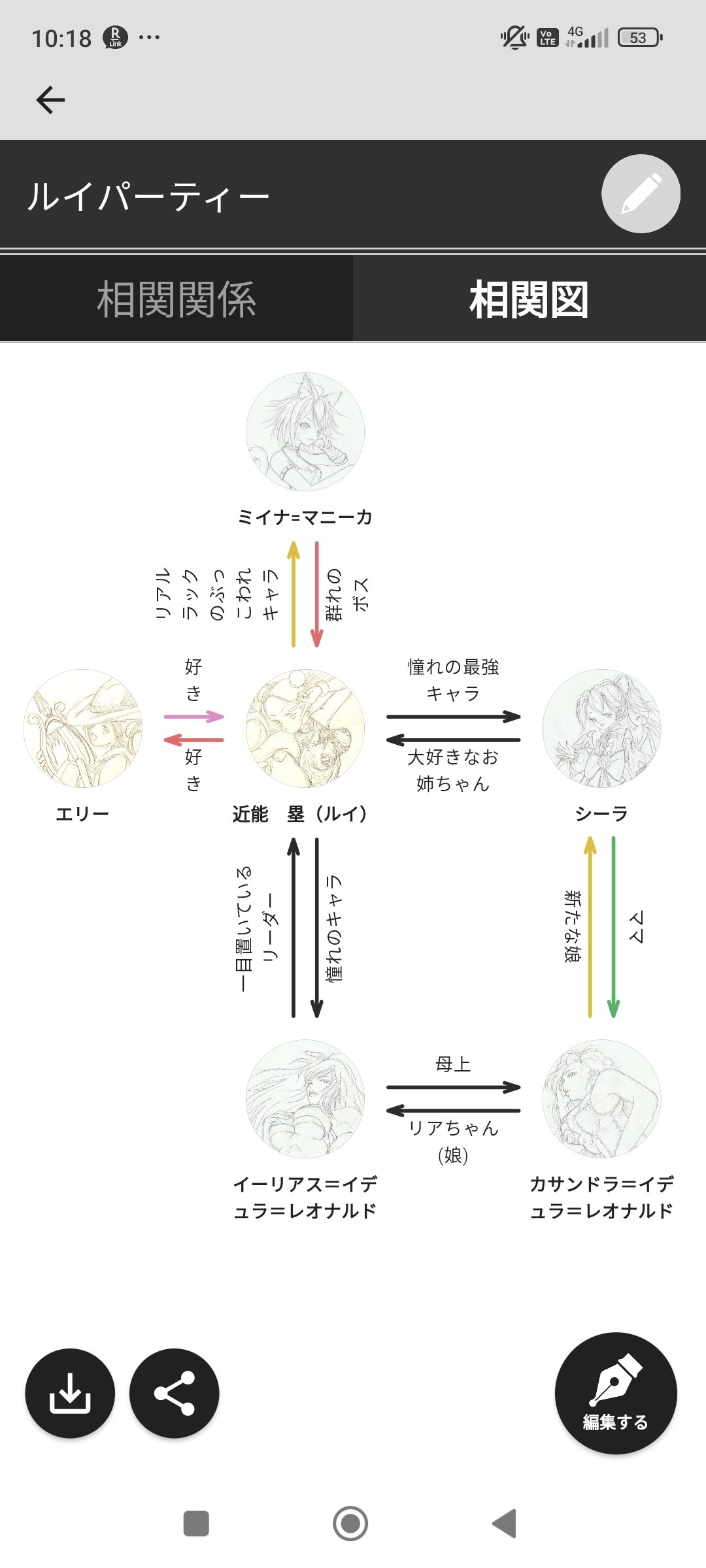画像は利用している執筆エディタ『Nola』で相関図も作れる事に気づいたので、作ってみました。