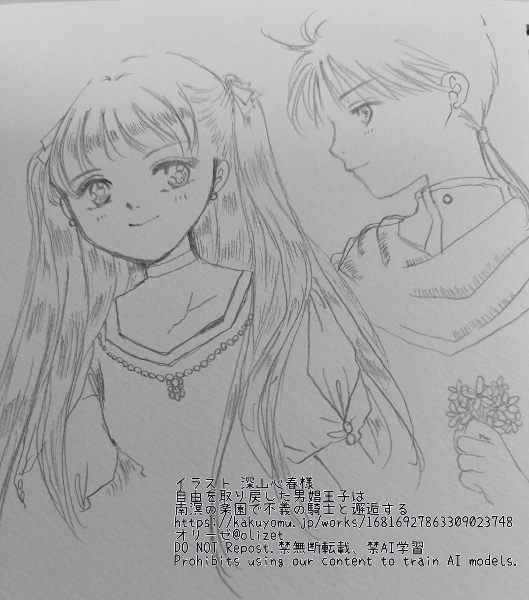 深山心春様に男娼王子のレビューとケインとユリアのイラストをいただきました。