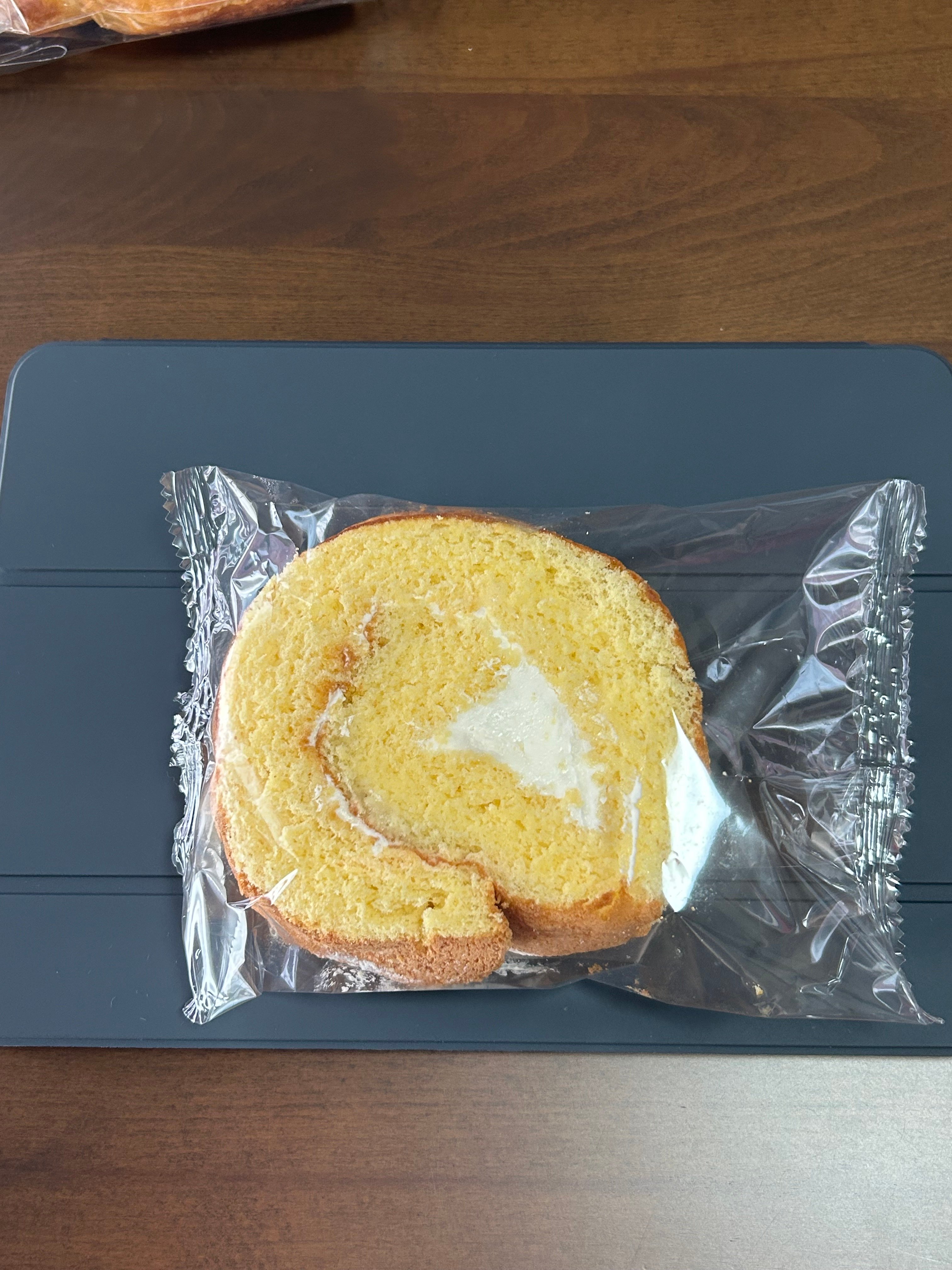 写真はケーキ屋さんで買ってきたロールケーキです。