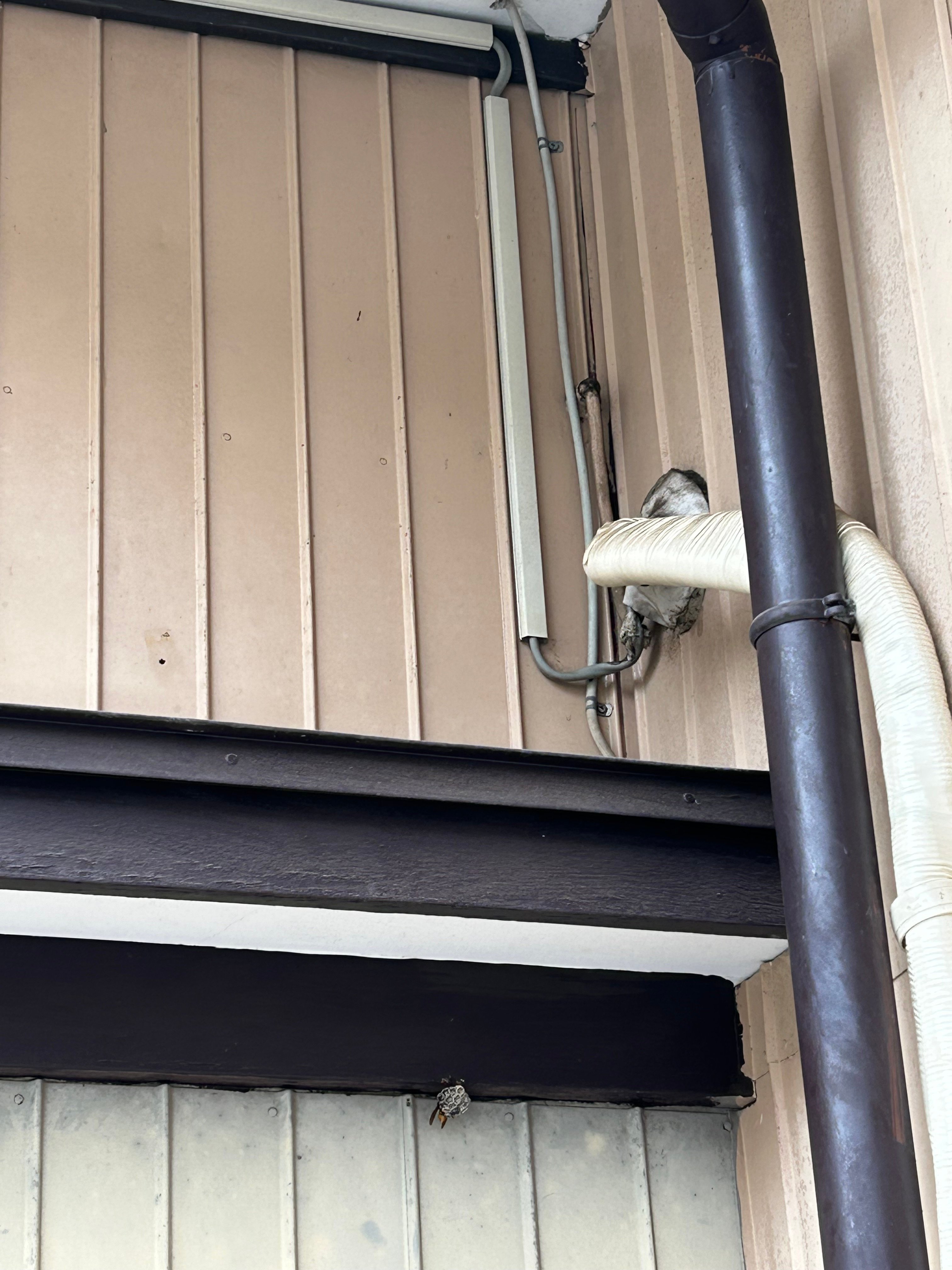 昨日は軒下。今日発見は雨戸の戸袋のとこです。