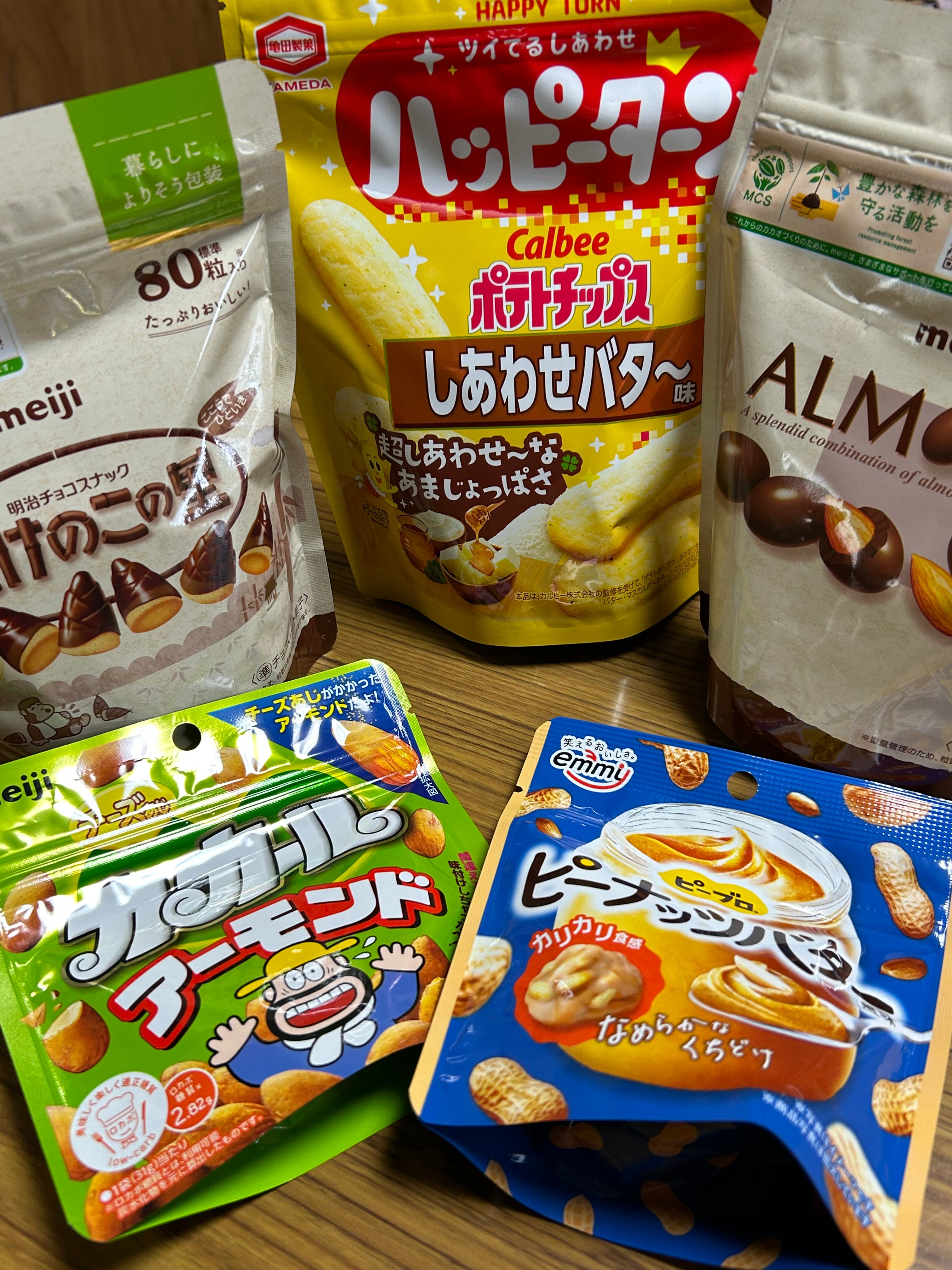 『きのこの山』や『たけのこの里』は、小分けされた大袋を良く買いま〜す。