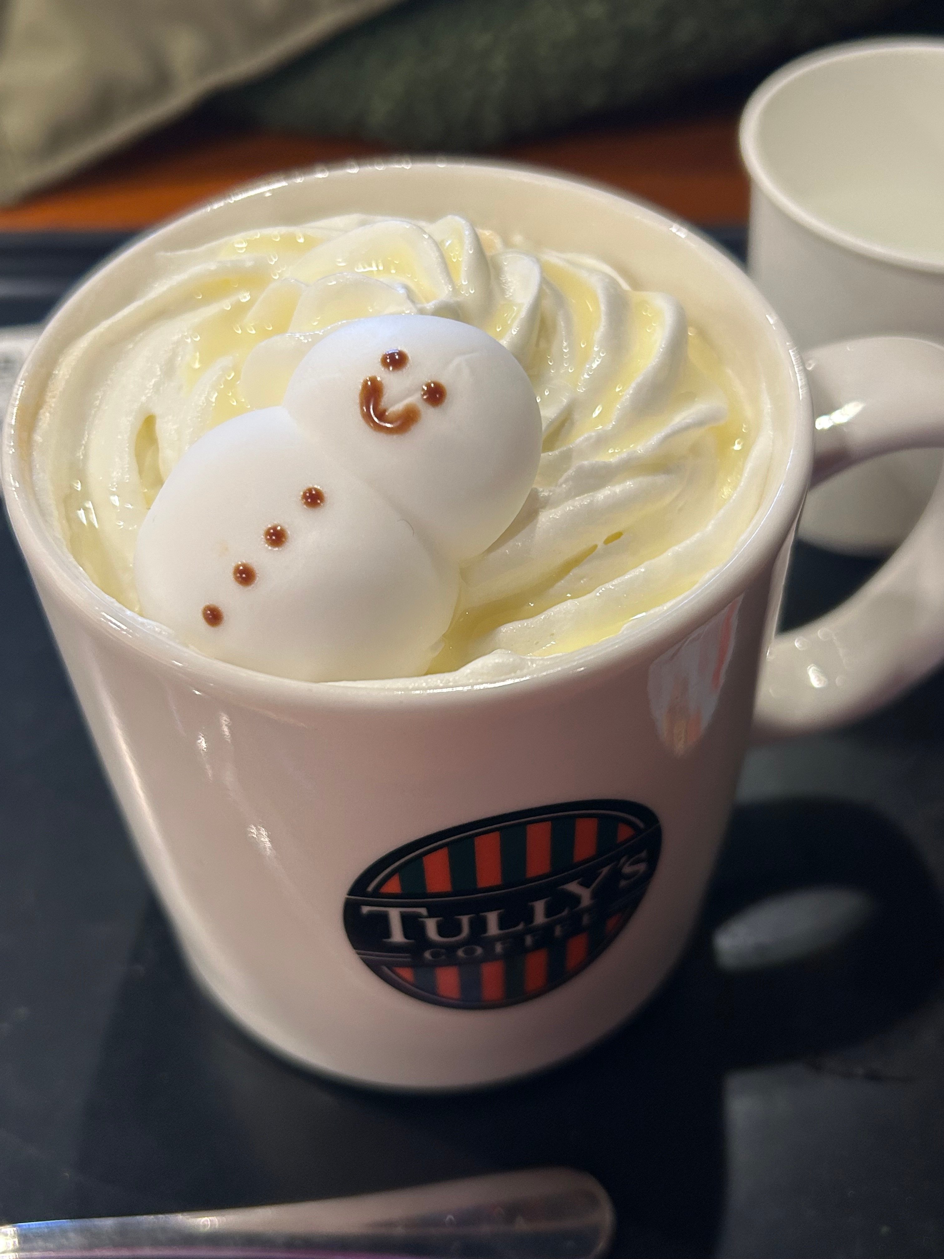 上にマシュマロの雪だるまと、クリームが乗っていますが、下は微糖のコーヒー。