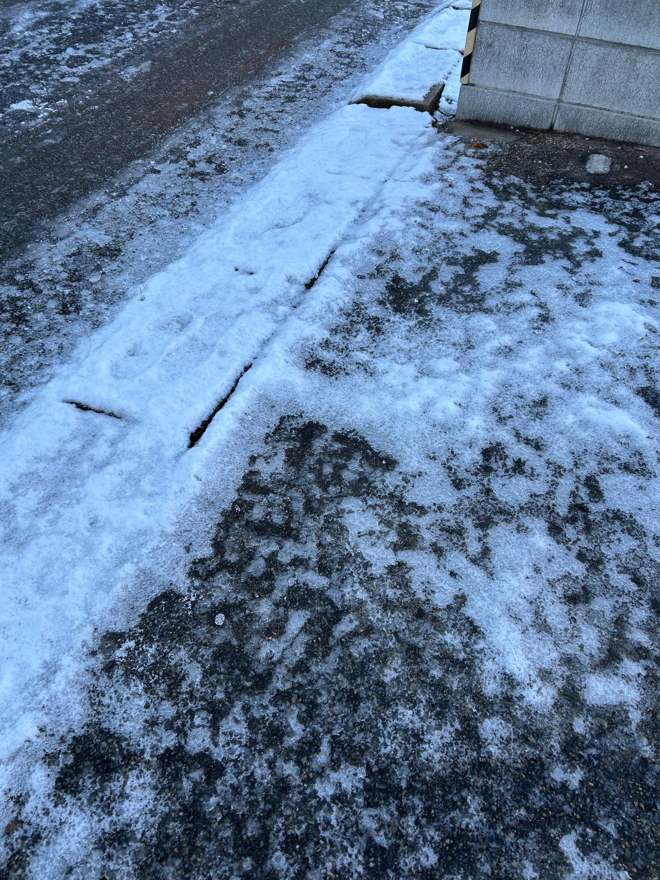 毎年、この通り、南側の道路は雪が氷になって長く溶けないです。