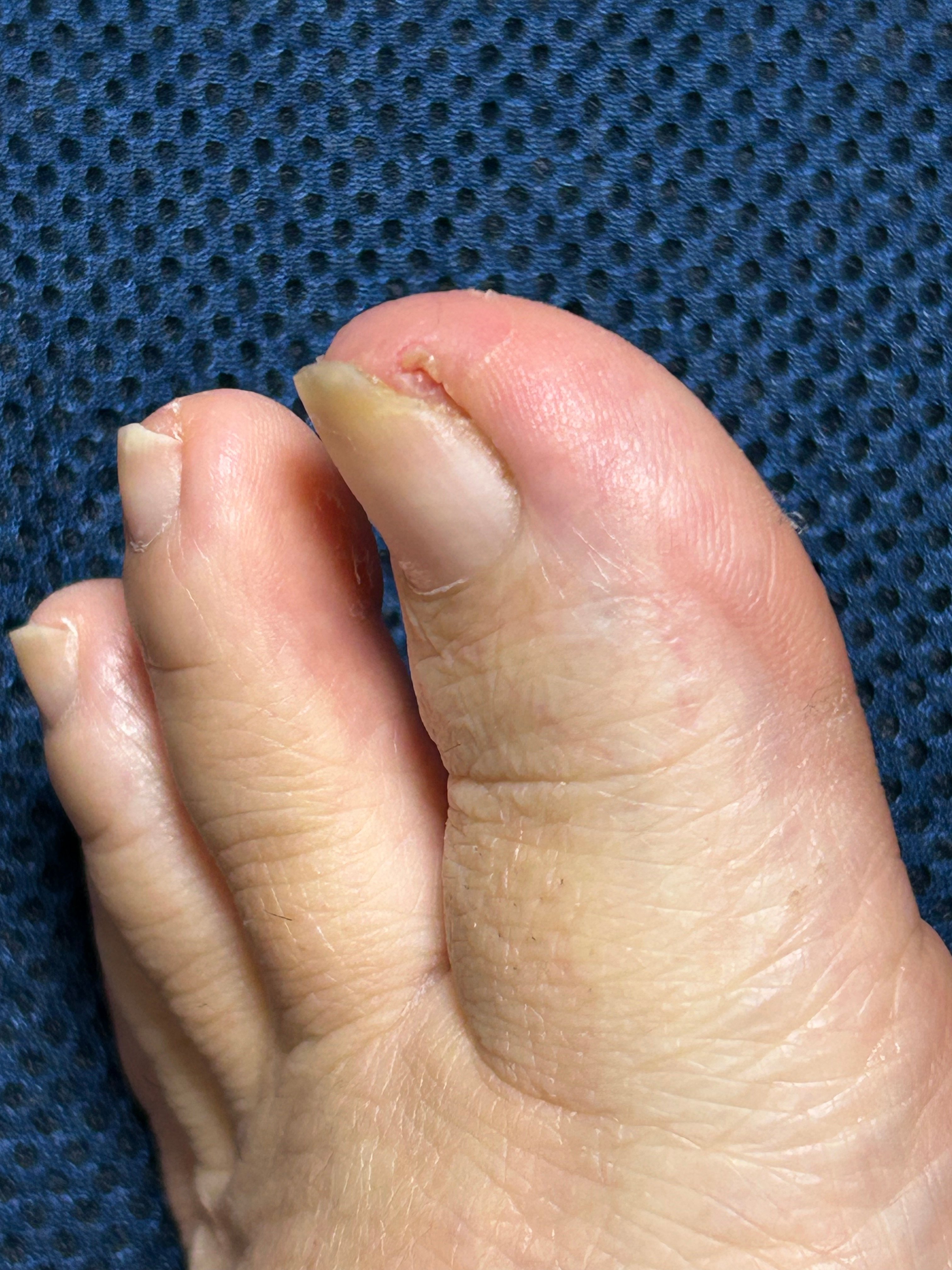 肉に埋まっていた端っこ爪の部分を切ってもらいました。