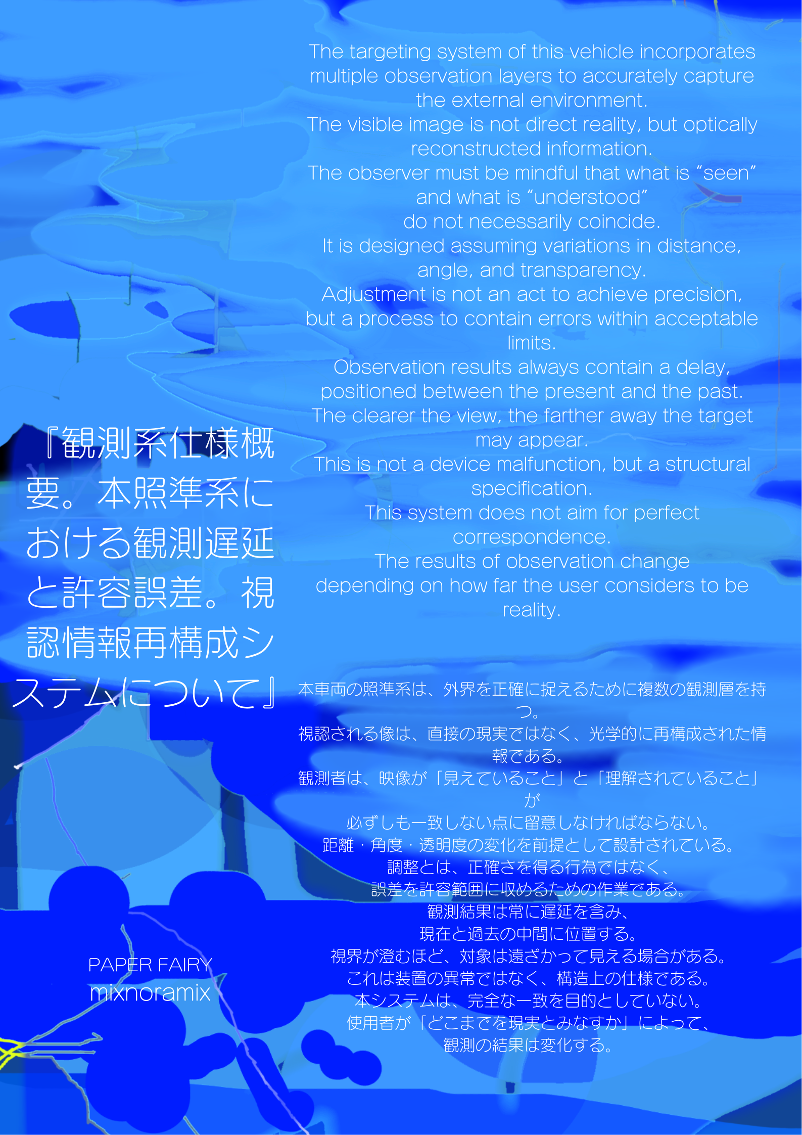 『観測系仕様概要。本照準系における観測遅延と許容誤差。視認情報再構成システムについて』