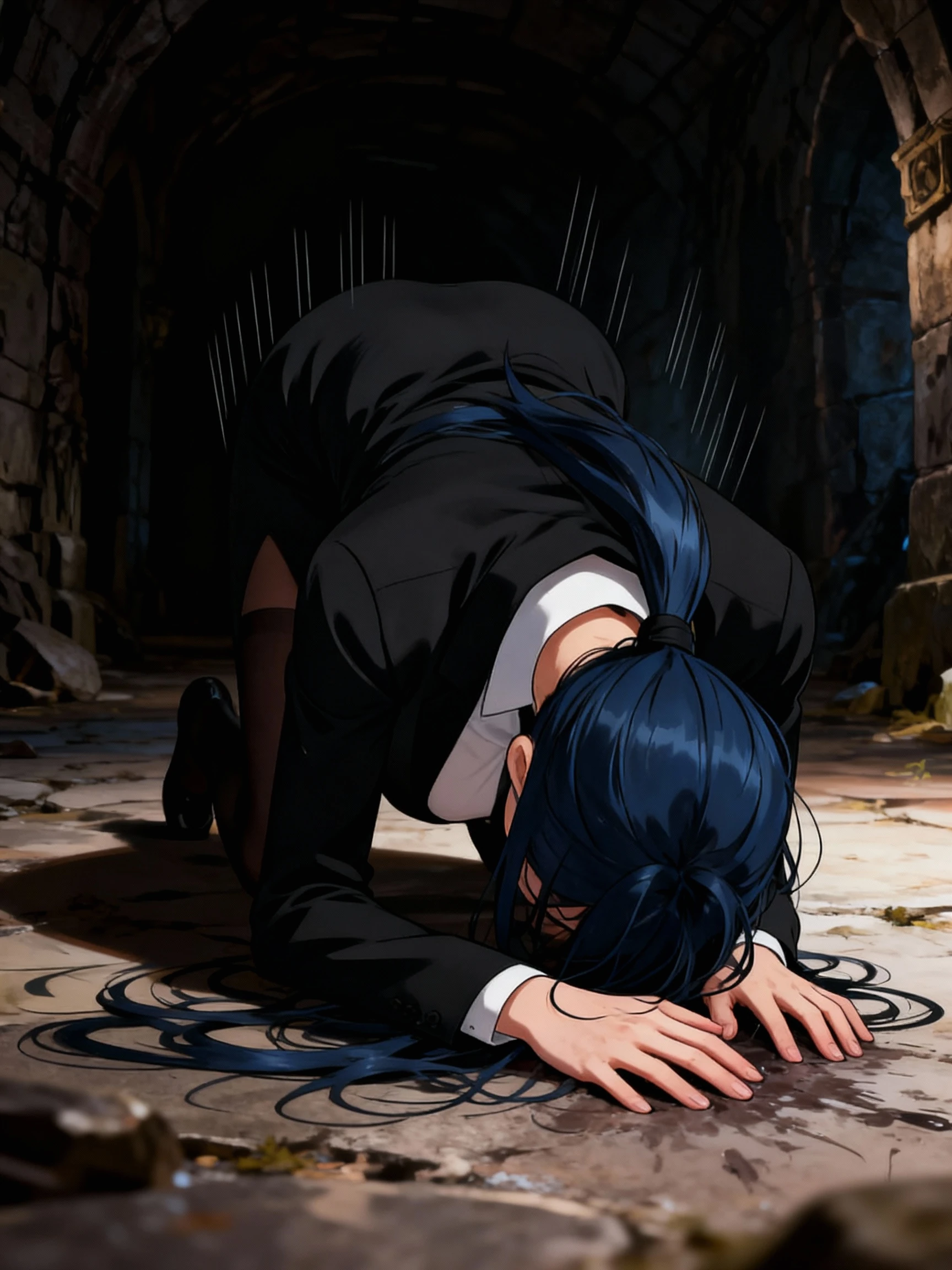 床に膝をつき、額が石に当たる。冷たい。硬い。逃げ場がない感触。