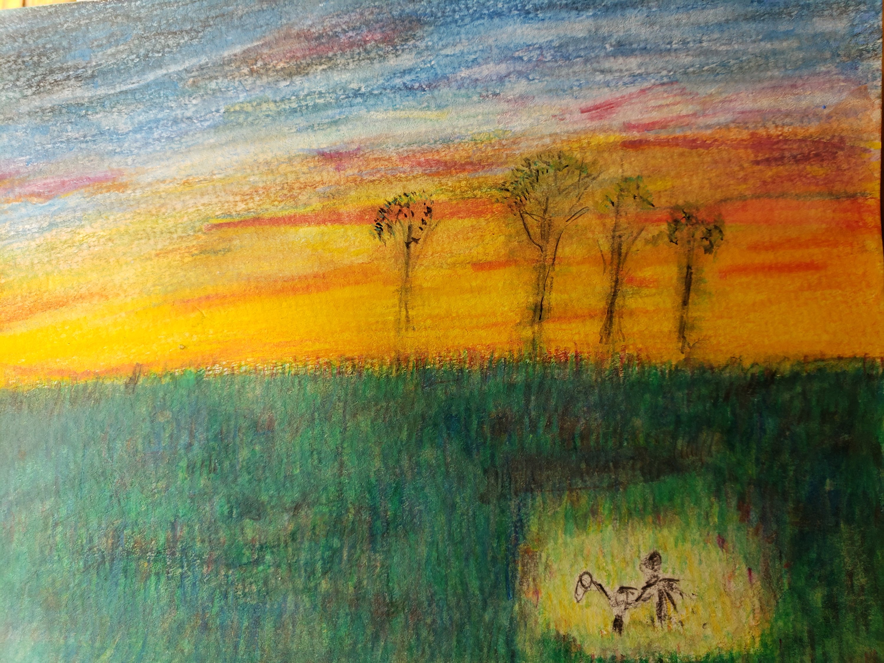 思い浮かぶ原っぱの光景です。思うように描けませんけれど。
