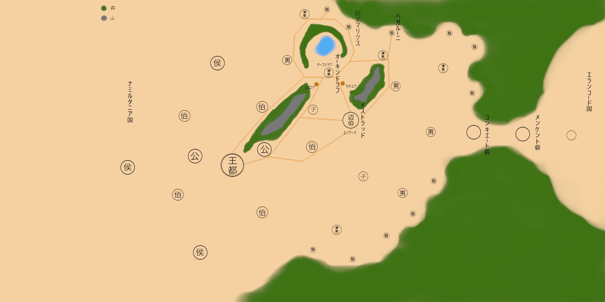 ・王都~オーキンドラフ領(馬車で5日)、オーキンドラフ領~ベガルーニ領(馬車で3日)、コンキエート砦~辺境伯領(馬車で5日)、