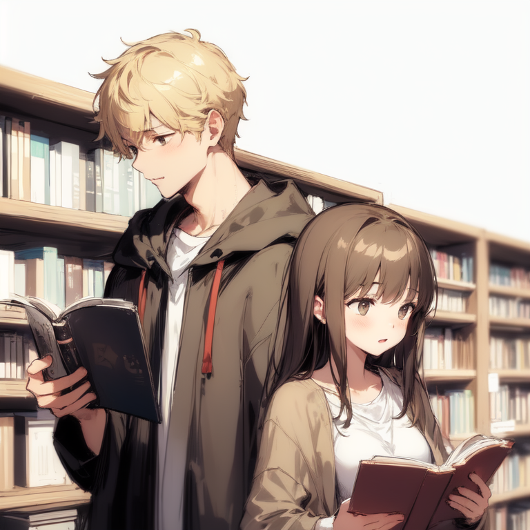 図書館博識カップルのルークさんとリッチェルさんです。ちなみにリッチェルさんが私用で訪れる際は、わざと目立たない服装をして正体を隠しています。