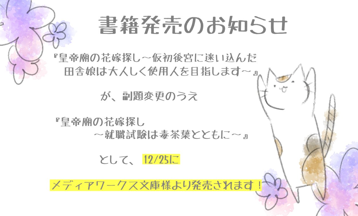 作業中は一体どうなることやらと不安でいっぱいでしたが、こうして無事書籍化のお知らせができることになり、ほっとしています。