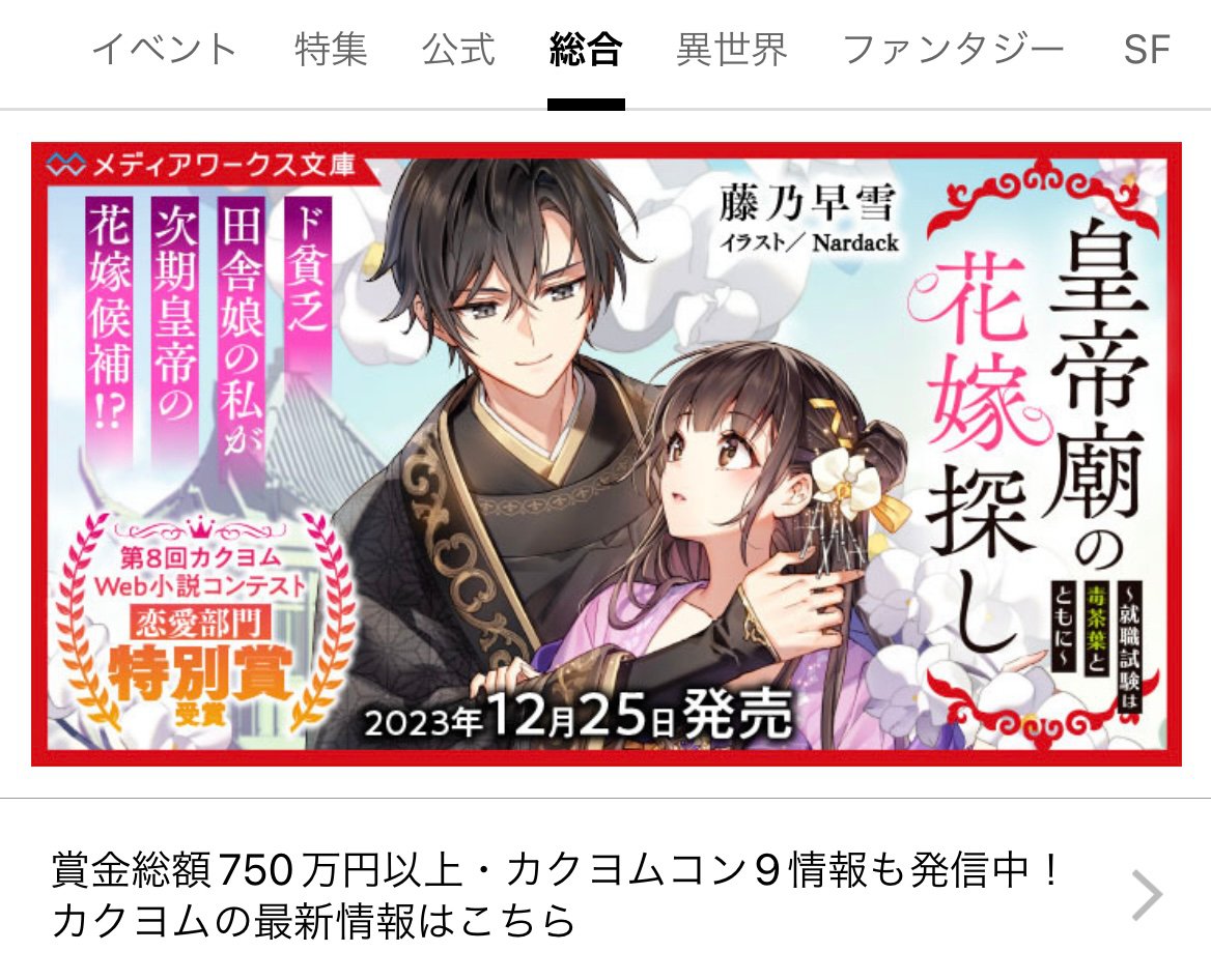 ▼カクヨムバナー、何回見ても一緒なのに嬉しくて何度も見て、何度もスクショを撮っています。