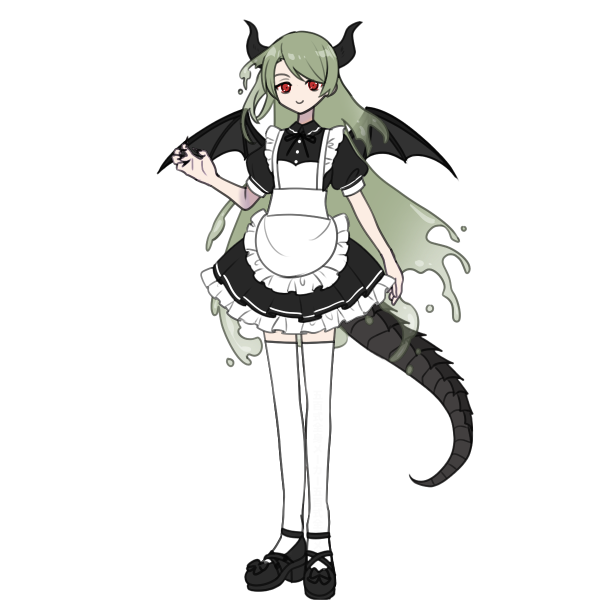 主のベルフェゴールと同じ緑髪、しかし色は少し薄い