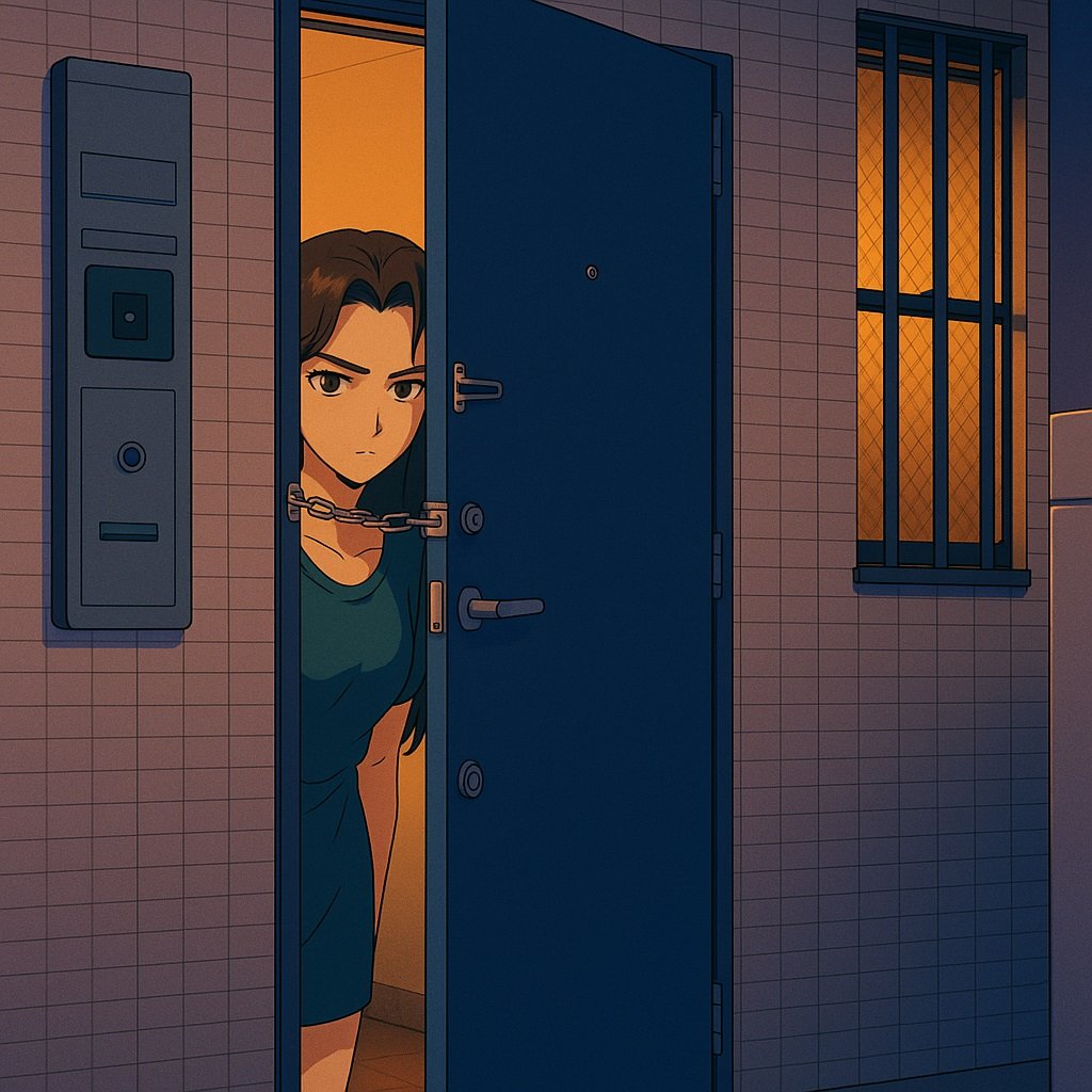 その時のあやさんは、チェーンがかかった玄関ドア越しに…