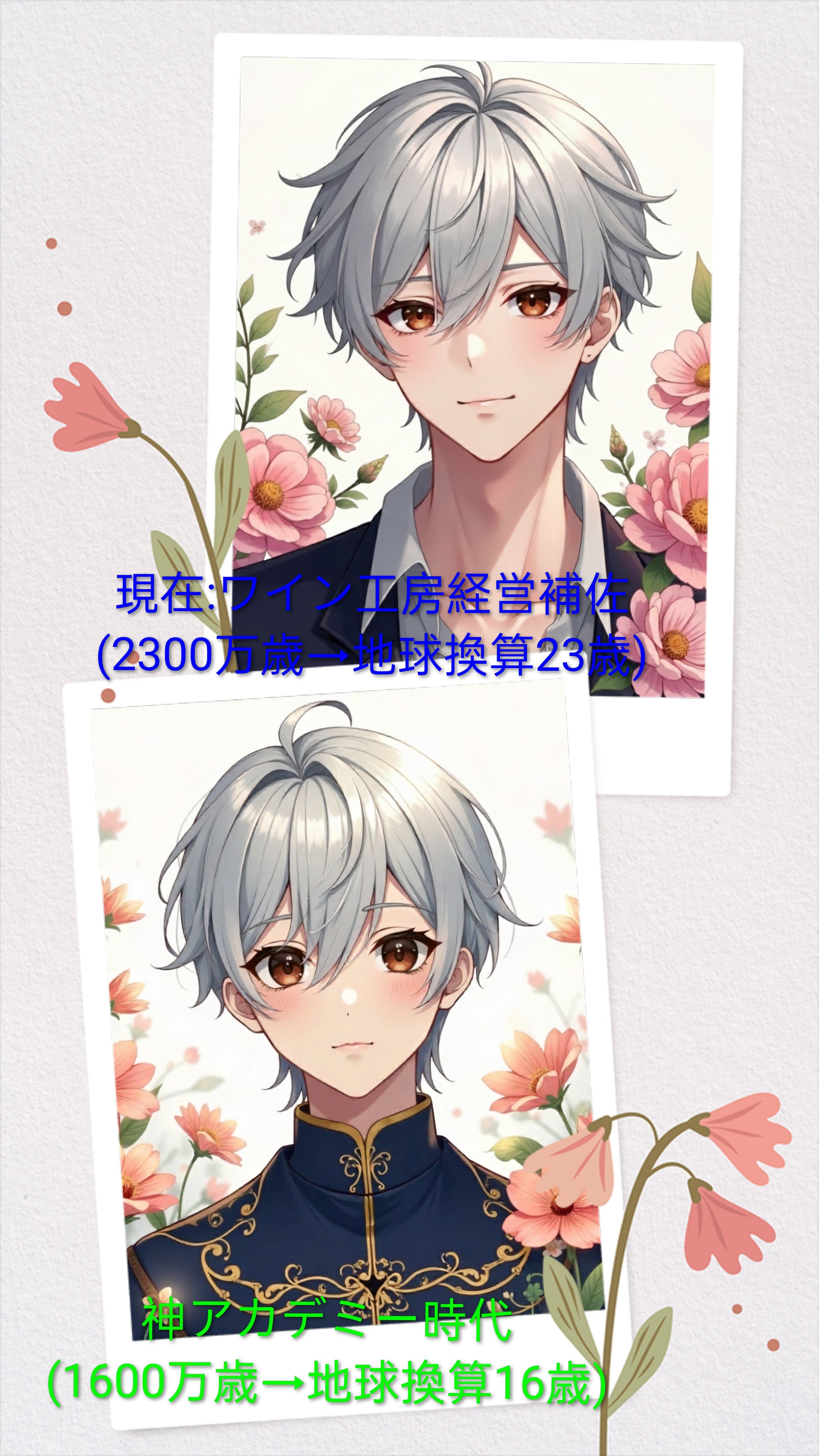 現在と神アカデミー時代(制服着用姿)の2枚です。