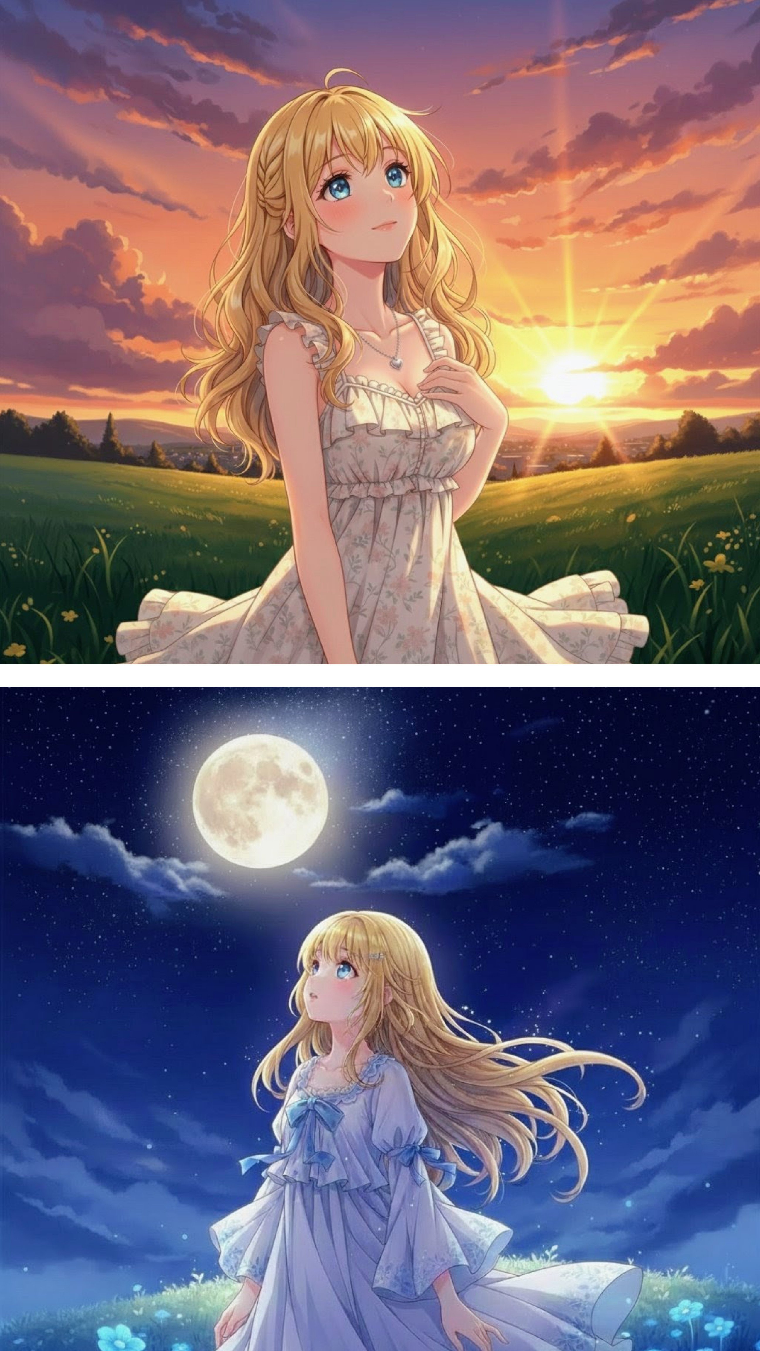 今回は第9話から、デメテルが(流星と)夕焼けを見ているシーン。