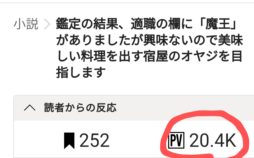 ファンタジー「鑑定の結果〜」のPVが、皆様のおかげ様で20000PVを超えました🙇(2025/1/4〜2/10)ありがとう御座います!🙇🙇🙇…間違ってないよね?汗