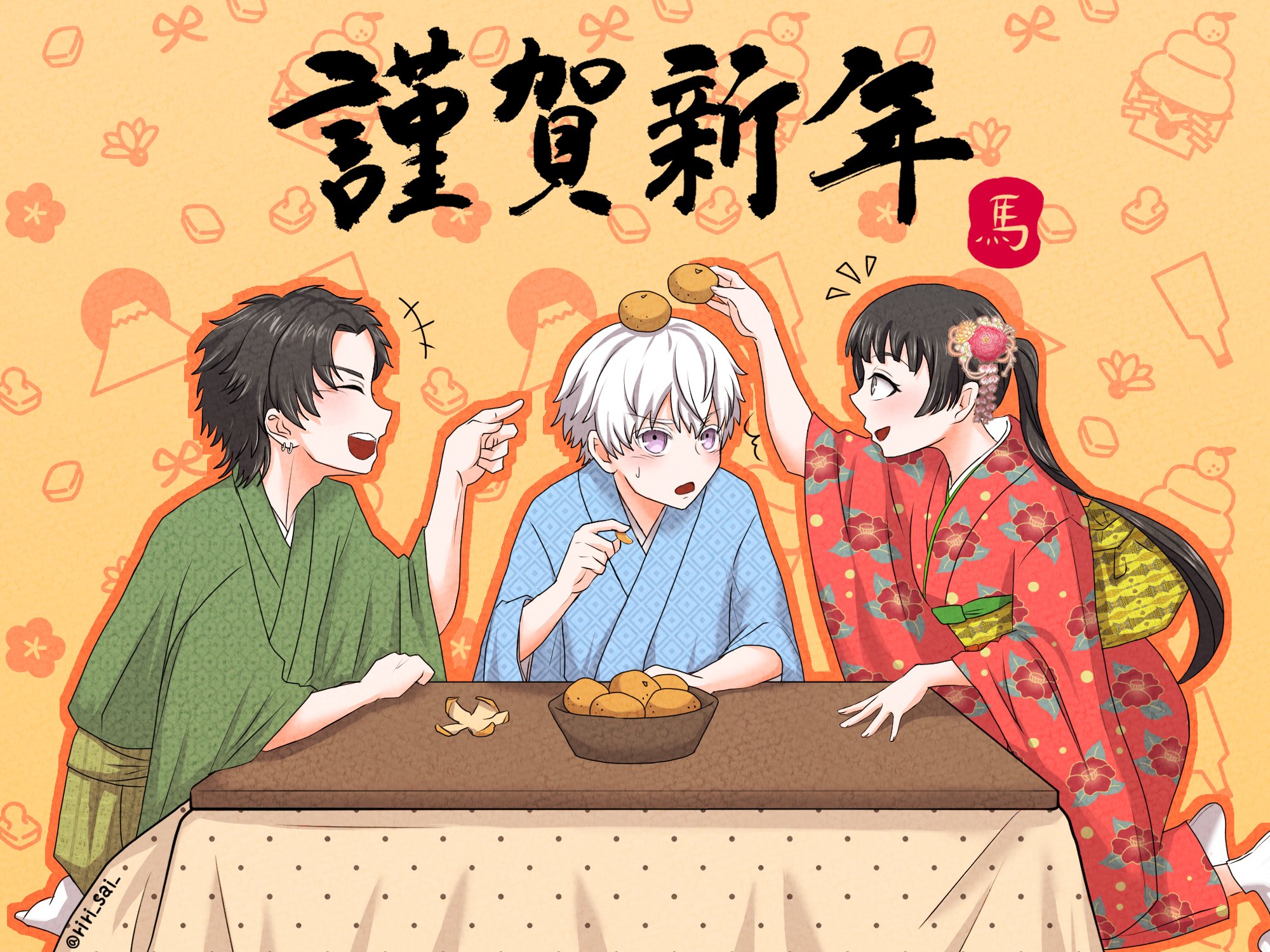 作品内容はシリアスな内容になっていますが、年賀状はほのぼの癒し系で!!(*´▽`*)