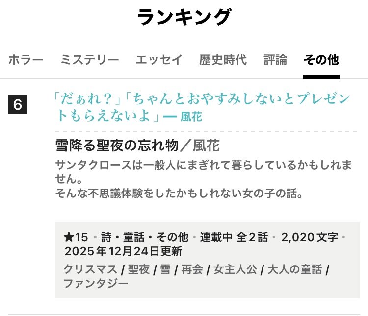 起きたら、その他日間で6位にまでなっていました。とても嬉しいです。