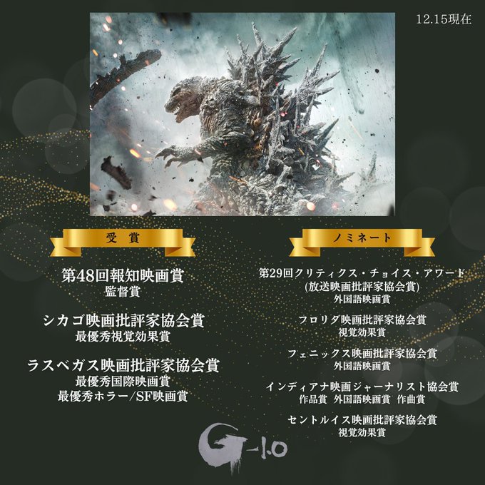 ゴジラ‐1.0/C(マイナスワン/マイナスカラ―)というモノクロ版の映画も1/12から公開で僕も観に行く予定です。