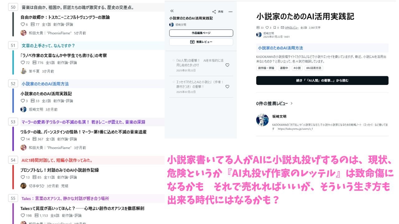 「小説家のためのAI活用実践記」がTALES、なろう、カクヨムでランキング入り