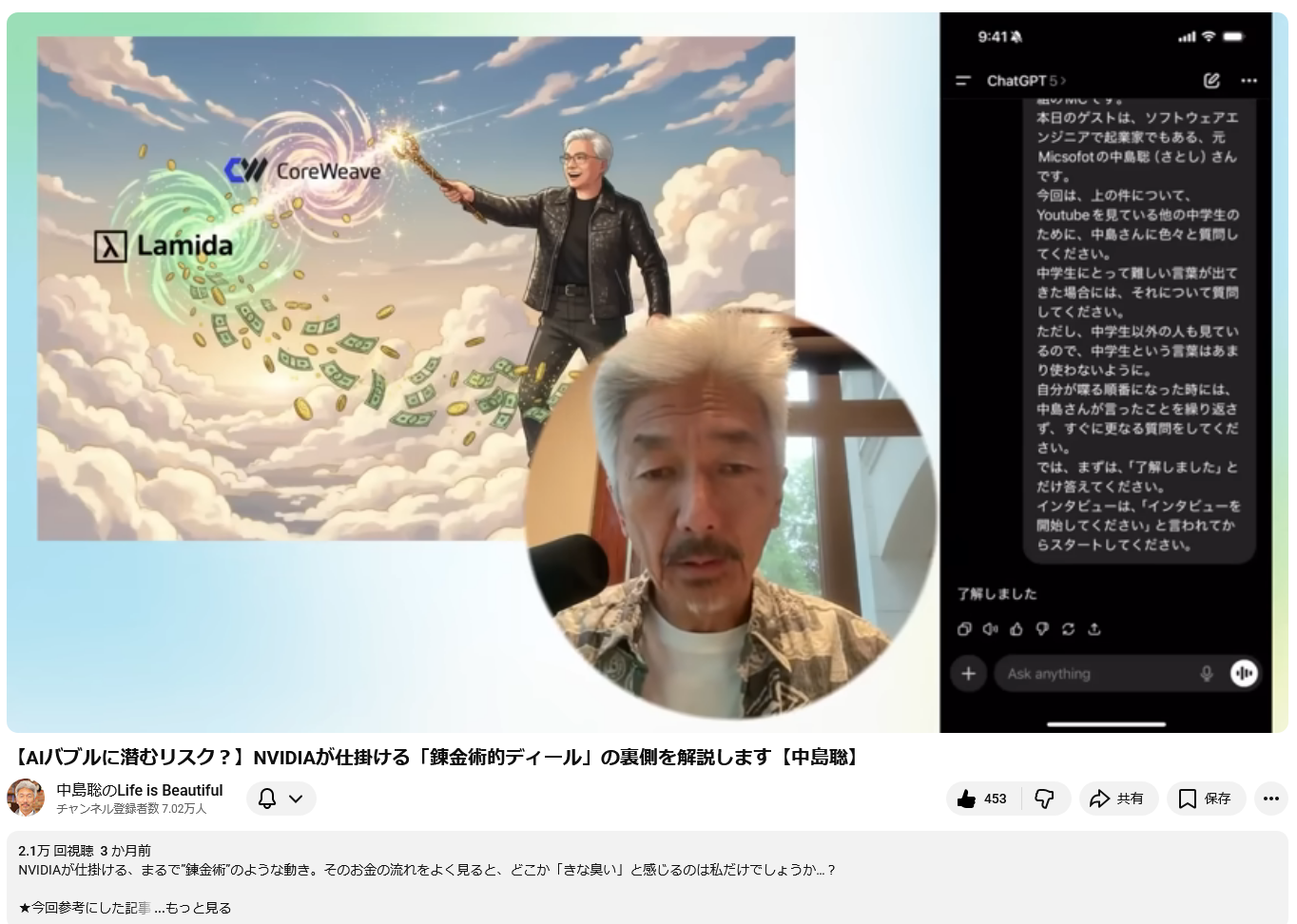 【AIバブルに潜むリスク?】NVIDIAが仕掛ける「錬金術的ディール」の裏側を解説します【中島聡】