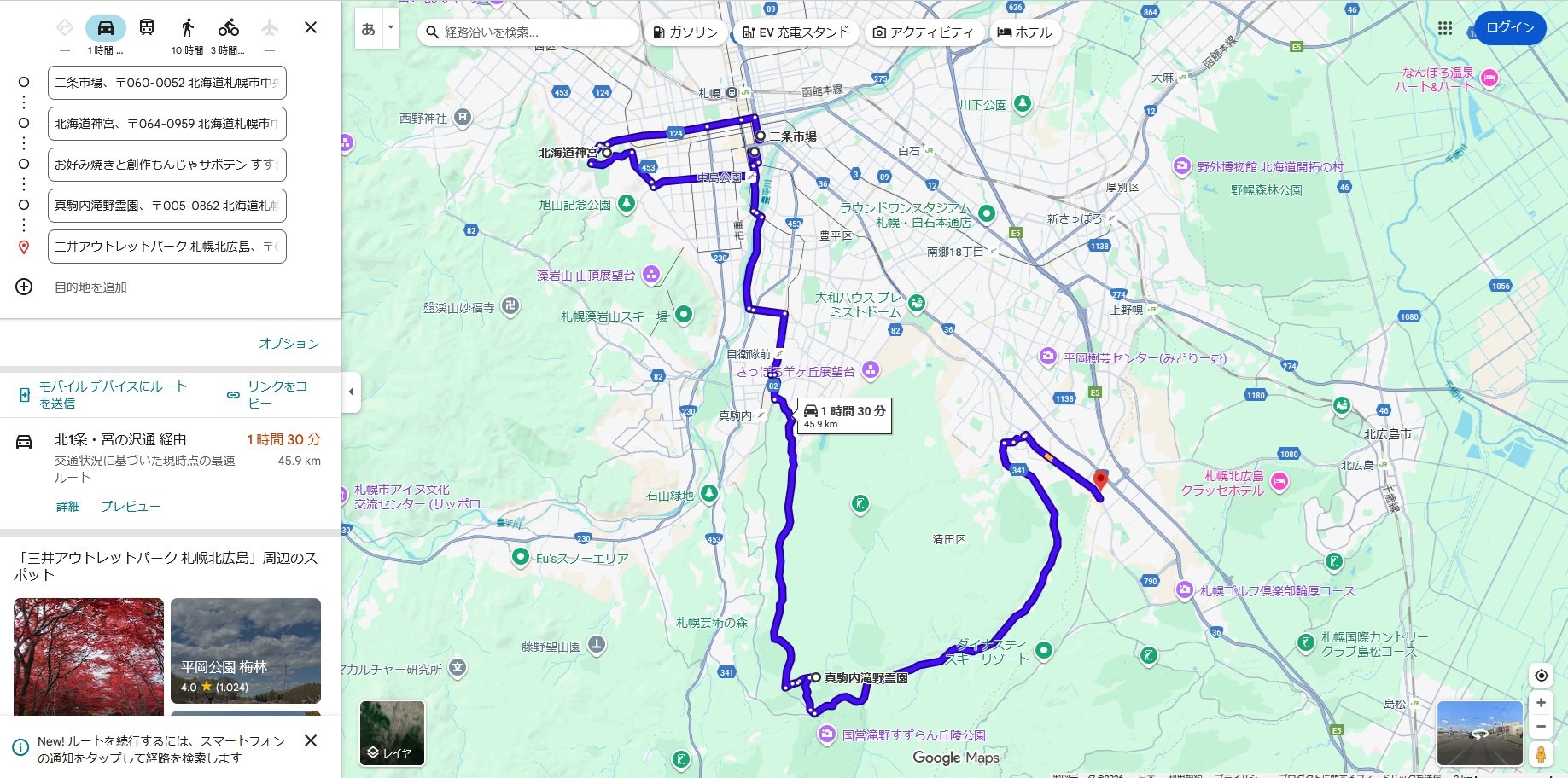これ電車だと時間がかかり過ぎるので、すすきのでレンタカー借りたら効率的。