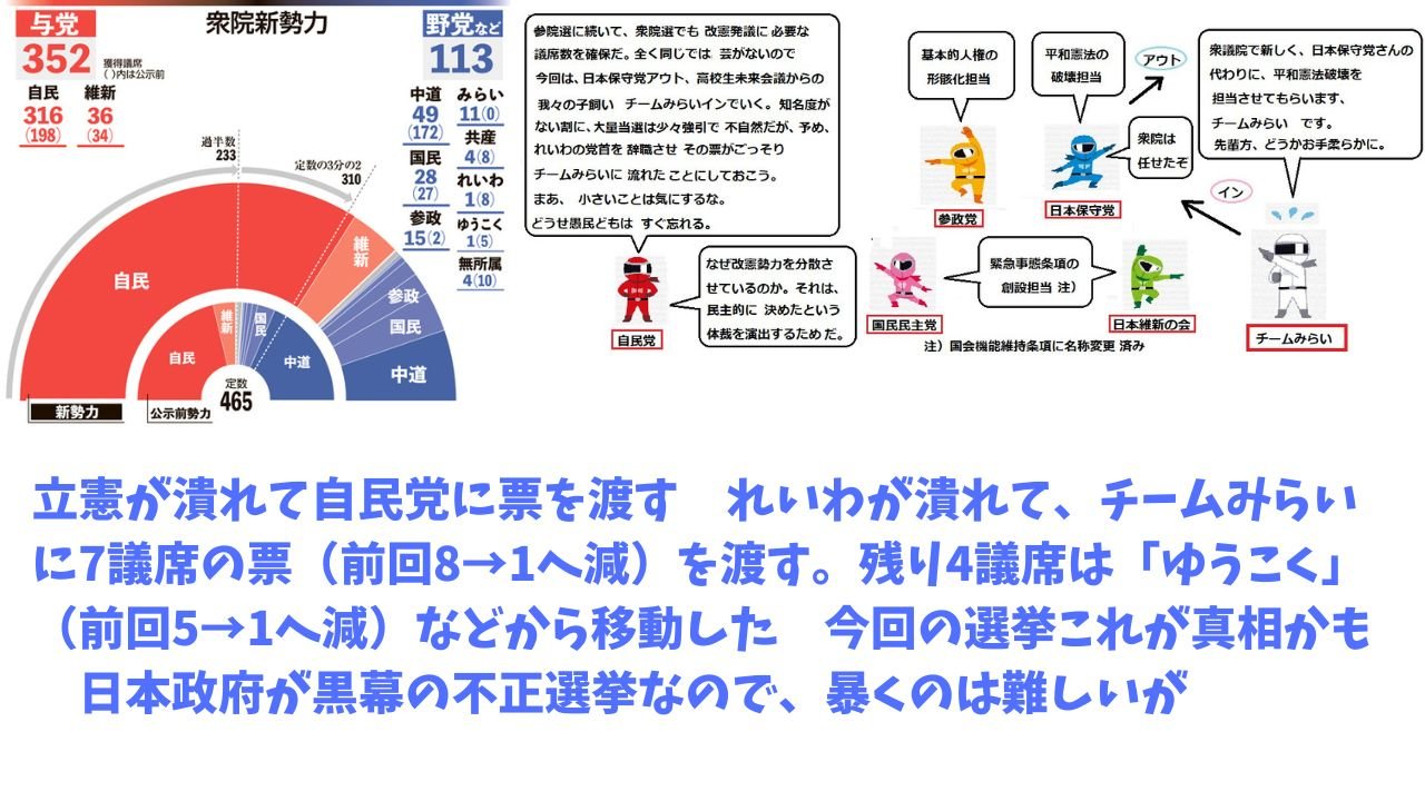 れいわが潰れて、チームみらいに7議席の票(前回8→1へ減)を渡したんだ。
