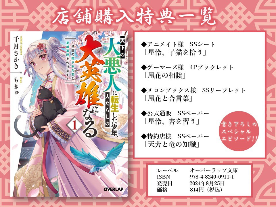 オーバーラップ文庫様のブログで、書籍版「天下の大悪人」の特典情報が公開されましたので、こちらでもお知らせします。