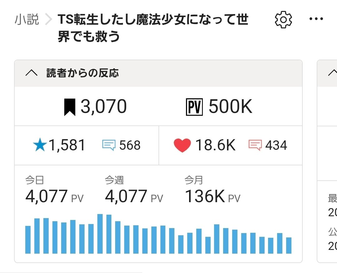 そして皆様に読んでいただいて、ついに『TS転生したし魔法少女になって世界でも救う』が50万PVを突破しました!