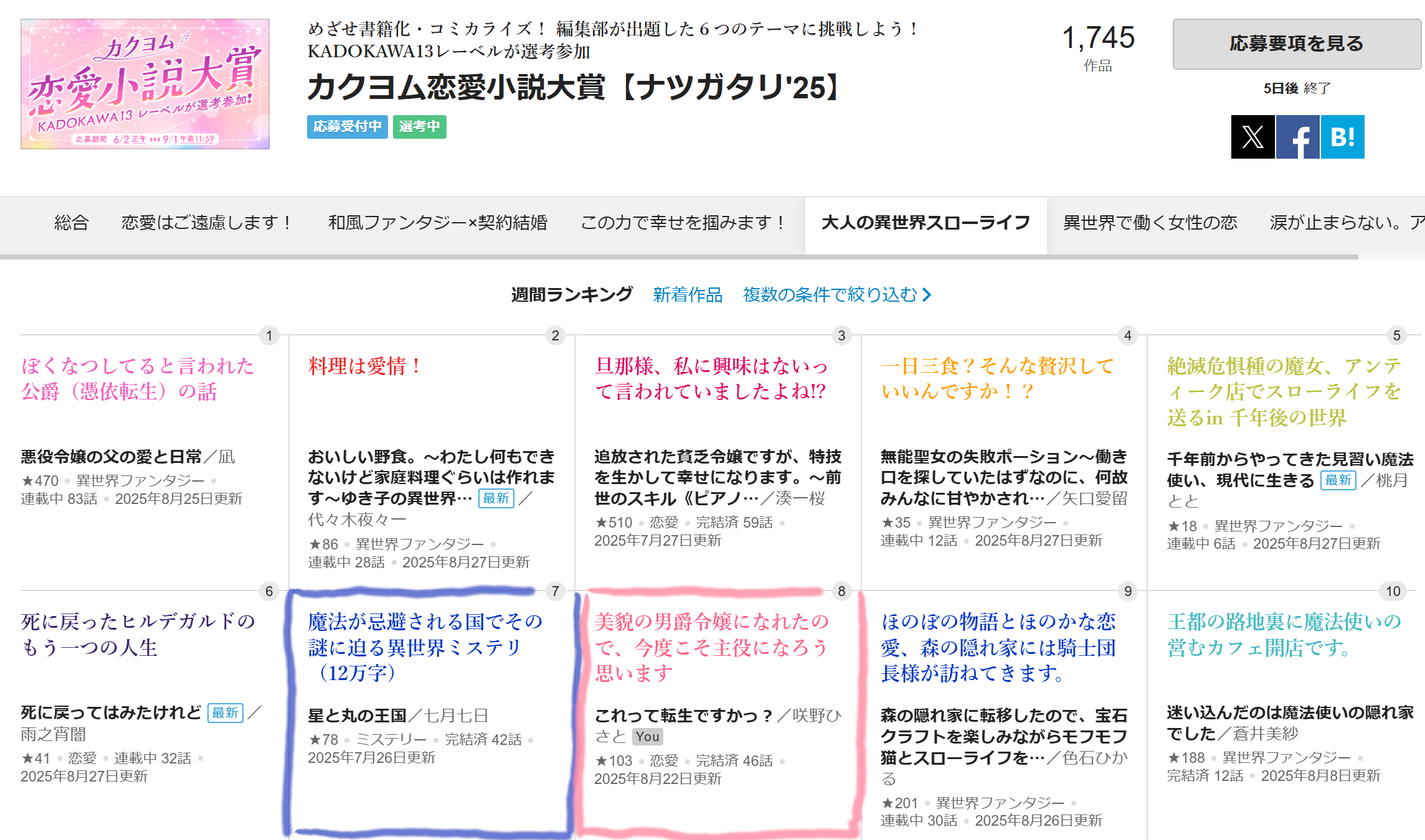 おかげさまで「恋愛小説大賞」のランキングでも盛り返し中。