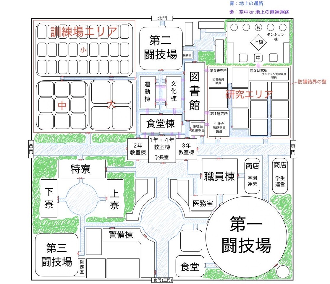 8月23日投稿の【あとがき】にも書きましたが、今回は『俺の職業がおかしい件』で主人公ヴェイルが通っている学園の地図を用意しました。