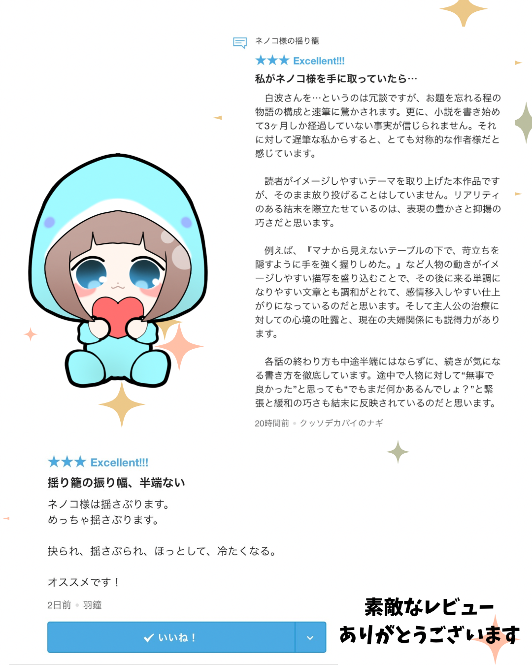 素敵なレビューも頂いて感謝しかありません(。o̴̶̷̥᷅ωก̀。)